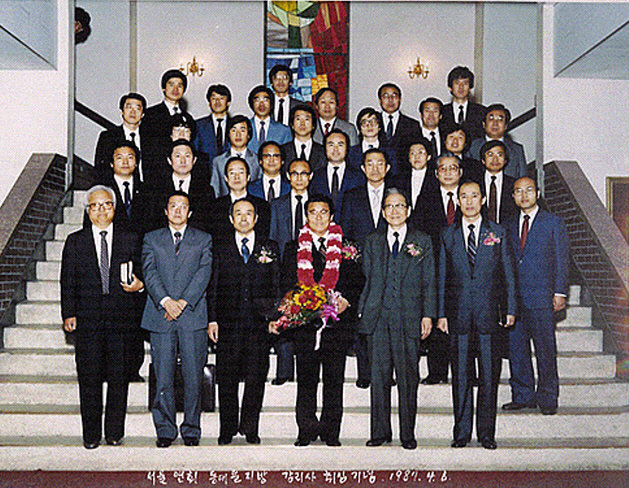 신학교 동기들 (아래- 조성근, 정해은, 전규일, 위- 김일환, 조창희, 왕대일, 이성호, 박상철, 김승태)
