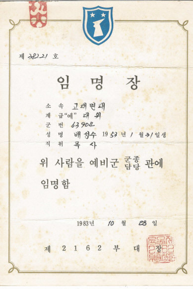 | 1977.3-1981.7 | 공군 대위 전역 (간부후보생 72기) | 군필 | ||||