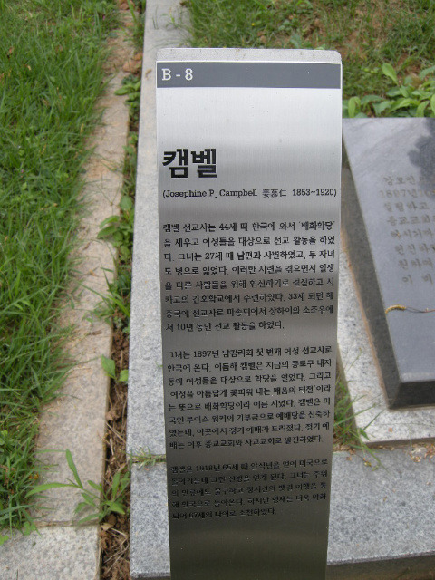 < 조세핀 P. 캠벨(Campbell, Josephine Eaton Peel, 姜慕仁 , 양화진외국인묘지>