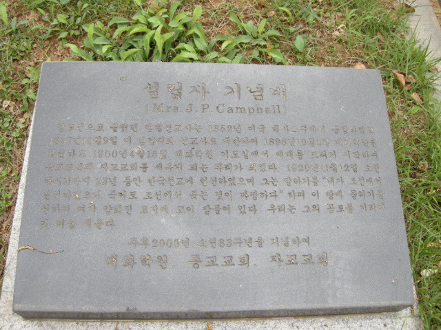 조세핀 P. 캠벨(Campbell, Josephine Eaton Peel) 선교사 묘비